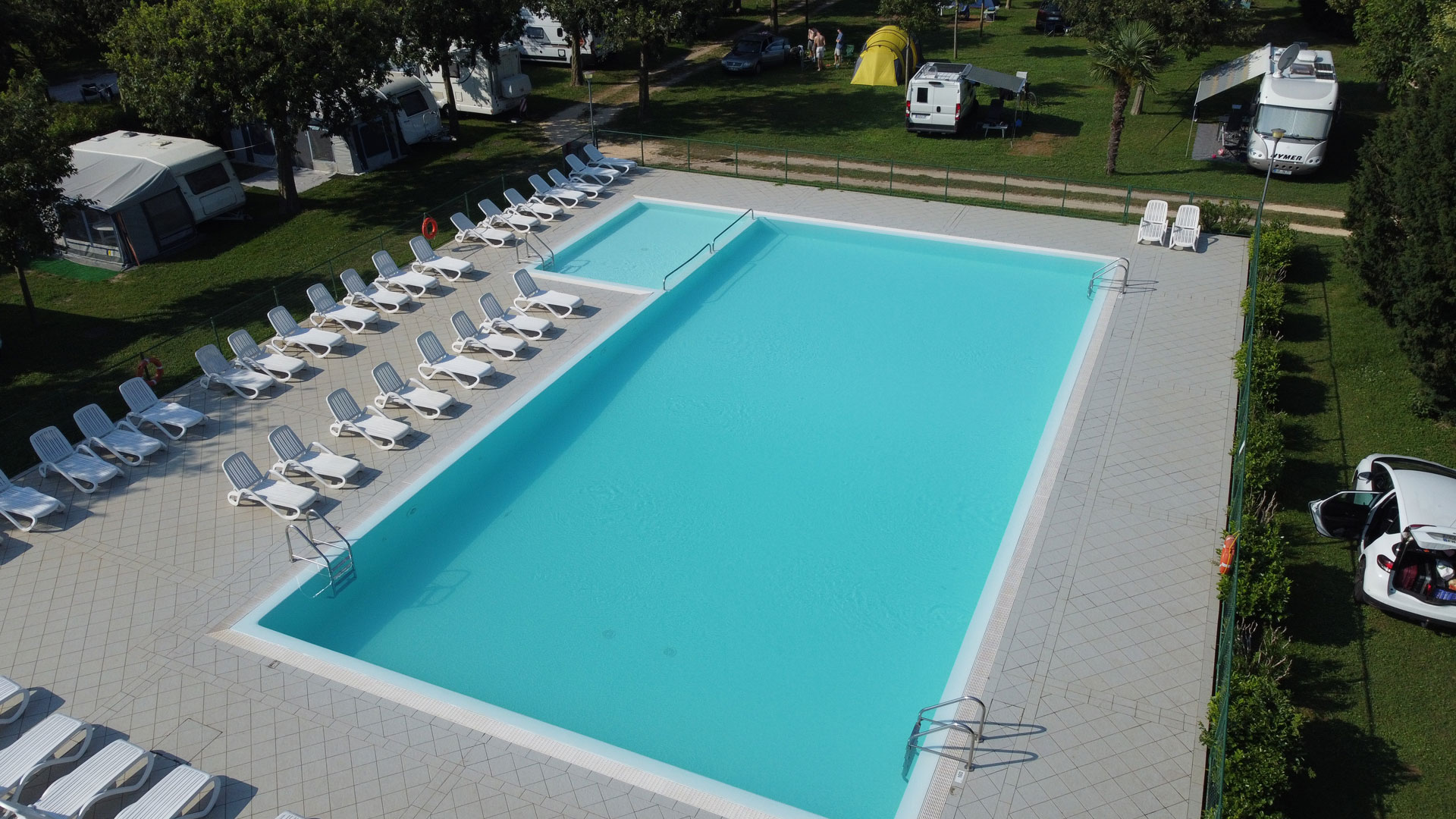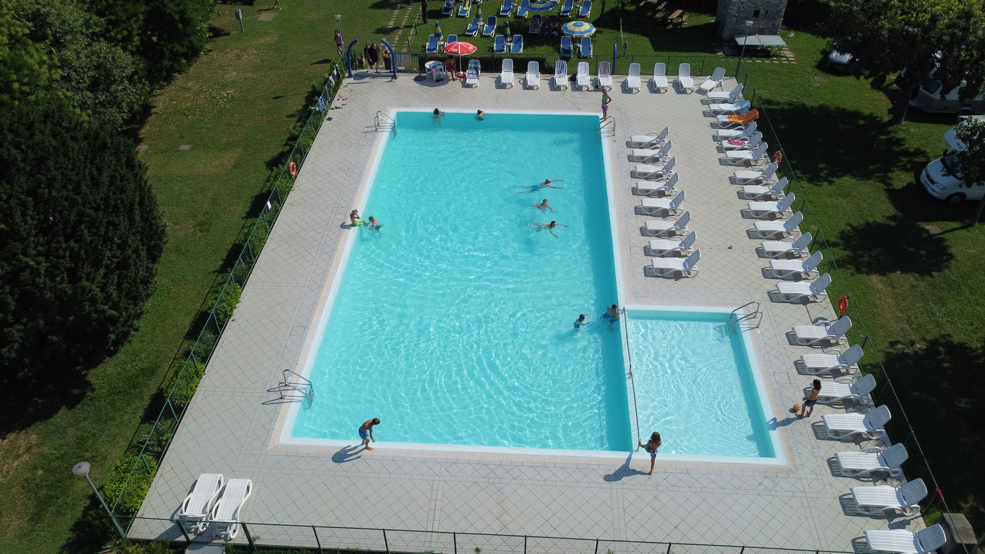 Unser Doppelpool, der sowohl für Erwachsene als auch für Kinder konzipiert ist, wird von morgens bis abends von der Sonne beschienen und bietet ein Erlebnis aus Sport und Entspannung für die ganze Familie, mit einem Solarium, das mit Liegestühlen ausgestattet ist.
